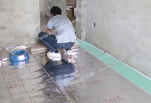 使用材料:安邦雙導發(fā)熱電纜,型號ABV0012800 TXLP/2R/17;智能溫度控制器;地暖感溫探頭;地暖專用保溫板;地暖專用反射膜;鋼絲網、地暖專用鋁箔膠帶、卡釘?shù)取?/span>