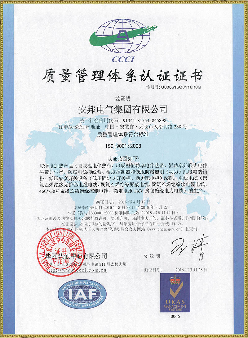 ISO9001質(zhì)量管理體系認(rèn)證證書