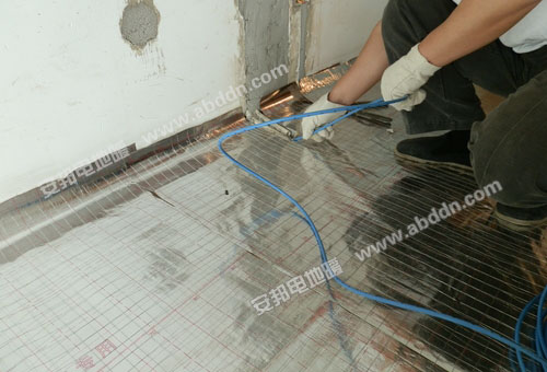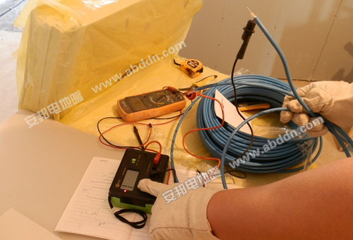 使用材料:安邦雙導(dǎo)發(fā)熱電纜,型號(hào)ABV0012800 TXLP/2R/17;智能溫度控制器;地暖感溫探頭;地暖專用保溫板;地暖專用反射膜;鋼絲網(wǎng)、地暖專用鋁鉑膠帶、卡釘?shù)取?/span>