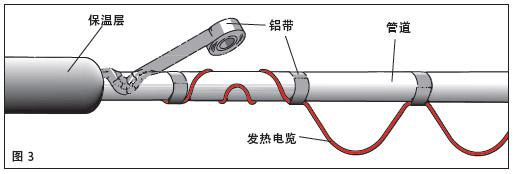 1、一根或多根發(fā)熱電纜沿管道拉直排列,見圖1、2。