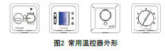 各廠家生產(chǎn)的溫控器,雖在原理、構(gòu)造上有所不同,但在外形上都是按照86×86標(biāo)準(zhǔn)尺寸制造的。有的為溫度旋鈕,有的還可以簡(jiǎn)單編程。外形參見(jiàn)圖2。