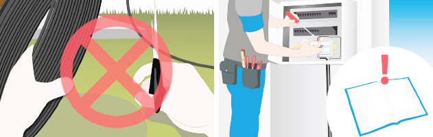 1、安裝及維修之前,斷開所有電路;